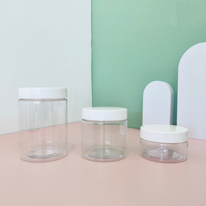 White transparent round plastic containers